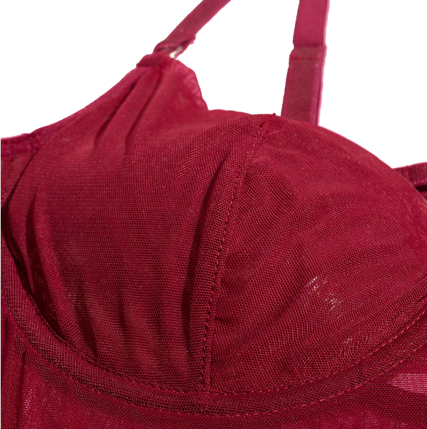 El color bordó, profundo y elegante, aporta una distinción única, ideal para ocasiones especiales donde quieras destacar con estilo y confianza. La malla transparente añade un aire delicado y atrevido, perfecto para quienes buscan combinar sensualidad y buen gusto. Y su diseño está pensado para acompañarte con comodidad y firmeza, para que te sientas tan bien como te ves. <3