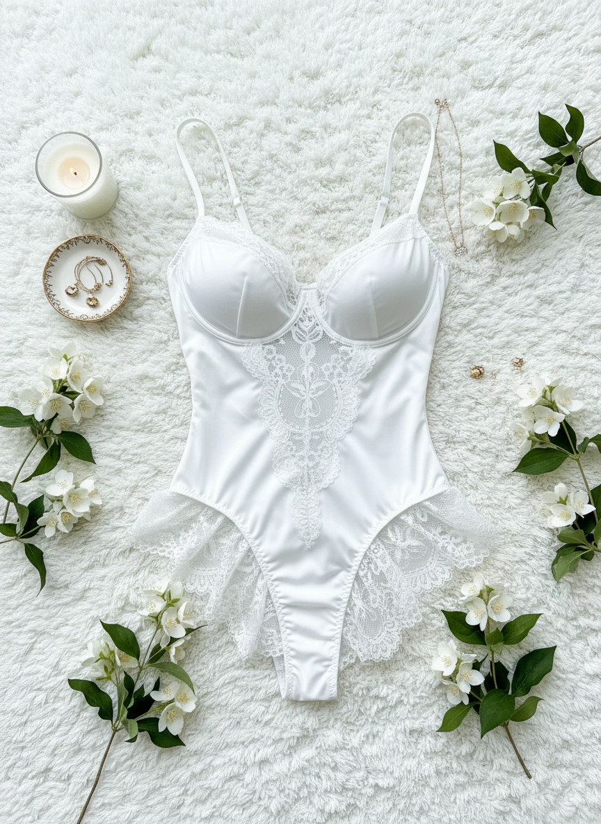 El Body Sweet viene en dos variantes de color: violeta intenso y blanco. Este body, que es sexy pero también cute, está confeccionado en encaje y satén, que aporta un toque súper femenino.