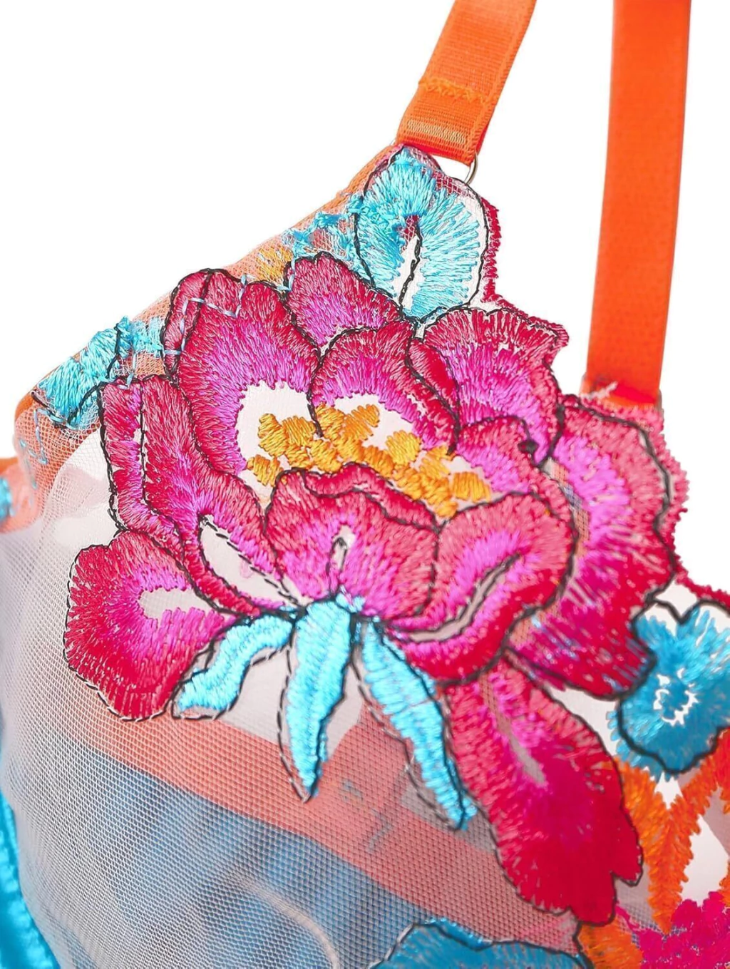 Viene en tres colores vibrantes —rojo, turquesa y fucsia— para que elijas el que mejor va con tu onda. El corpiño con aros da el soporte justo, mientras que las transparencias y tiras le ponen un toque fresco y atrevido que resalta tu figura.