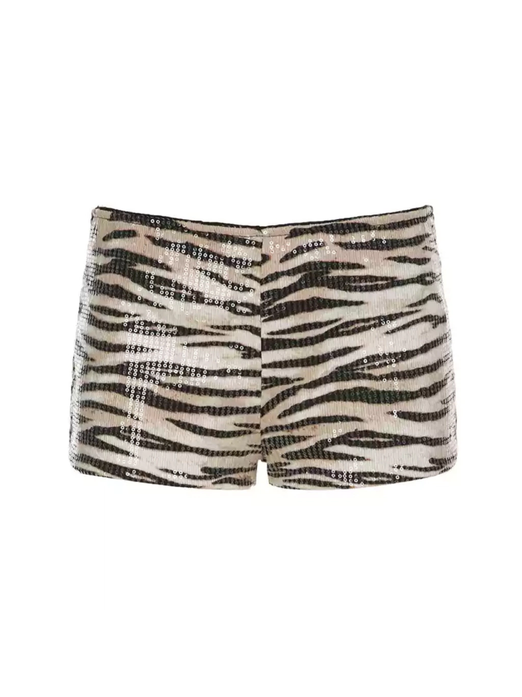 Te presentamos los Minishorts Foxy en tres estilos irresistibles: leopardo marrón, leopardo rosa y negro. Este diseño mini, sexy y moderno realza tu figura y resalta tus piernas, poniendo en primer plano tus curvas con un brillo único gracias a sus lentejuelas.
