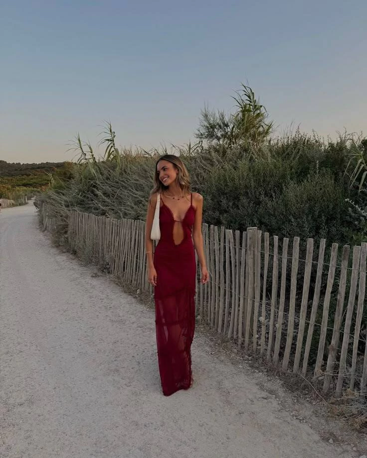 Descubrí el Vestido Rubí, una prenda diseñada para destacar en cualquier ocasión con su sofisticado color vino y detalles únicos. Este vestido maxi está confeccionado en tela de mesh, incluye un cut out frontal que realza la figura, además de los delicados detalles con volados. Tiene doble forro en vestido y una falda traslúcida que cae abierta. Las tiras en los hombros son regulables.