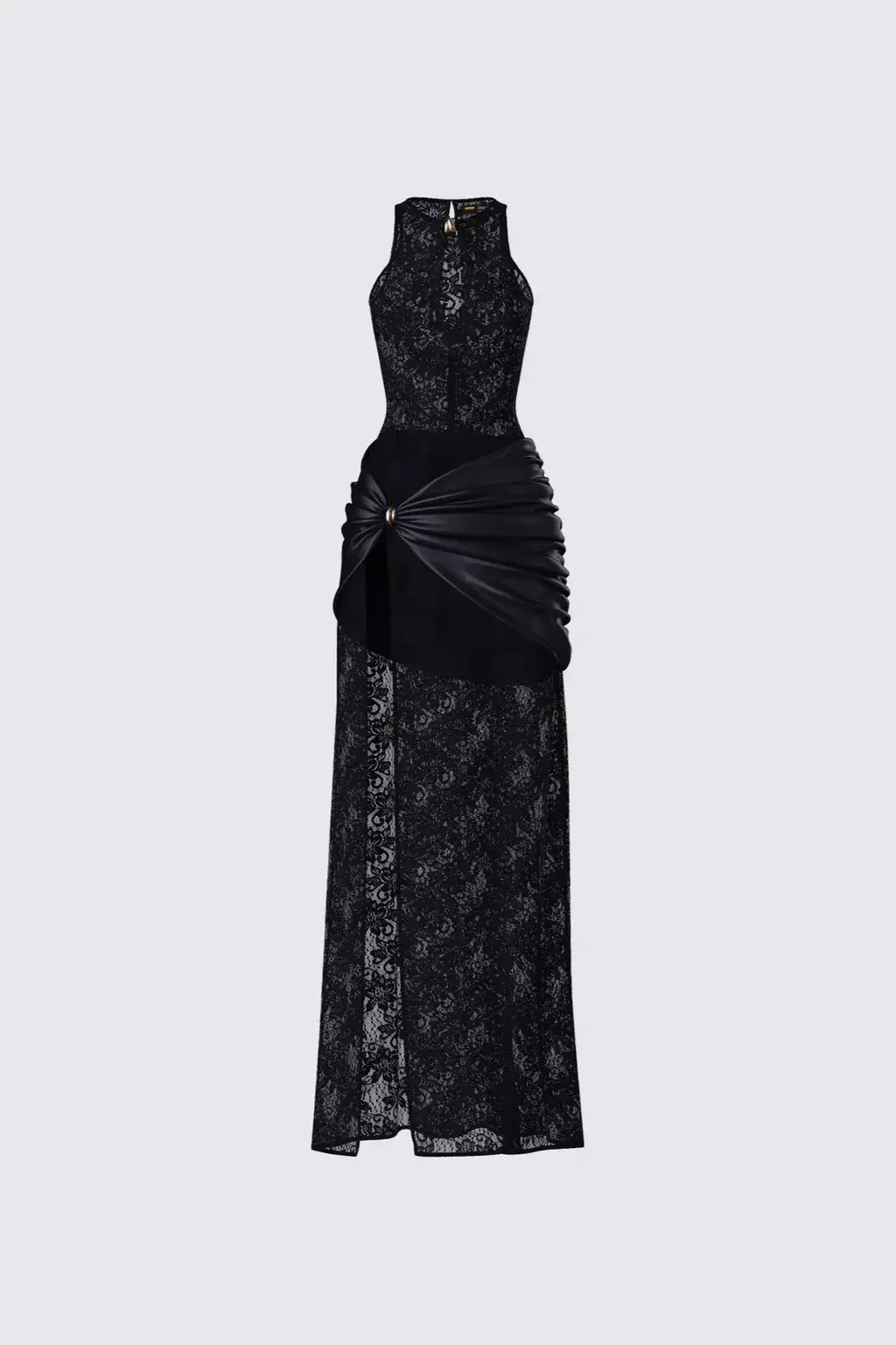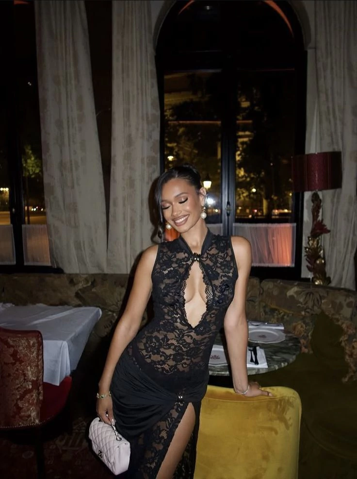 Vestido Cruella es la elección ideal para eventos formales y salidas de noche. Con un cuello alto elegante y un profundo escote, este vestido de encaje negro detallado realza tu figura con un ajuste ceñido y fruncido de atrás. Tiene una abertura alta en la pierna que aporta un toque más audaz y sofisticado. Además, está confeccionado en un encaje floreado suave para mayor comodidad 🍒